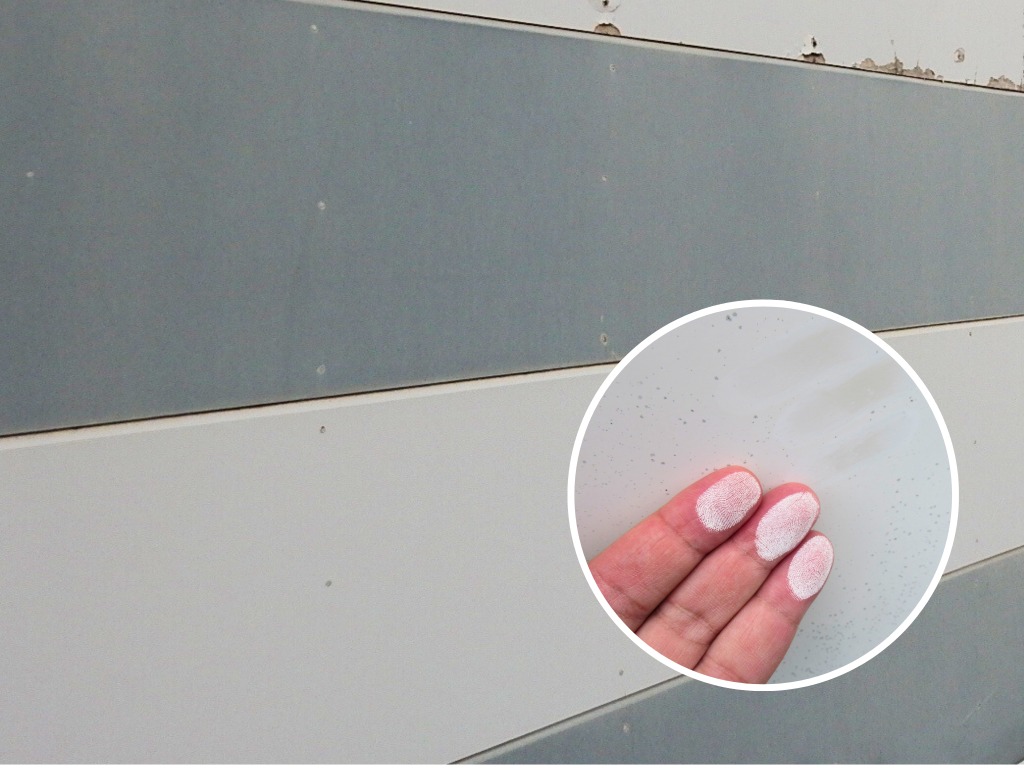塗装の防水効果が低下しているサインです。手で直接触れると、白いチョークの粉のようなものが付着しますので、ご自分でもチェックしやすいでしょう。