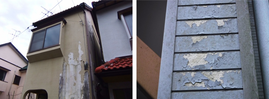 塗膜の剥れを放置していると、外壁下地にバリアがない状態で保護できず、建物の下地は紫外線や雨風によって劣化が進みます。外壁塗装時期のサインです。