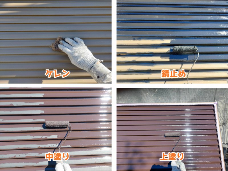 次に、金属部分をサビから守るために錆止め塗料を塗布します。細かい凹凸部分や折り目も、刷毛とローラーを使い分けながら丁寧に。
