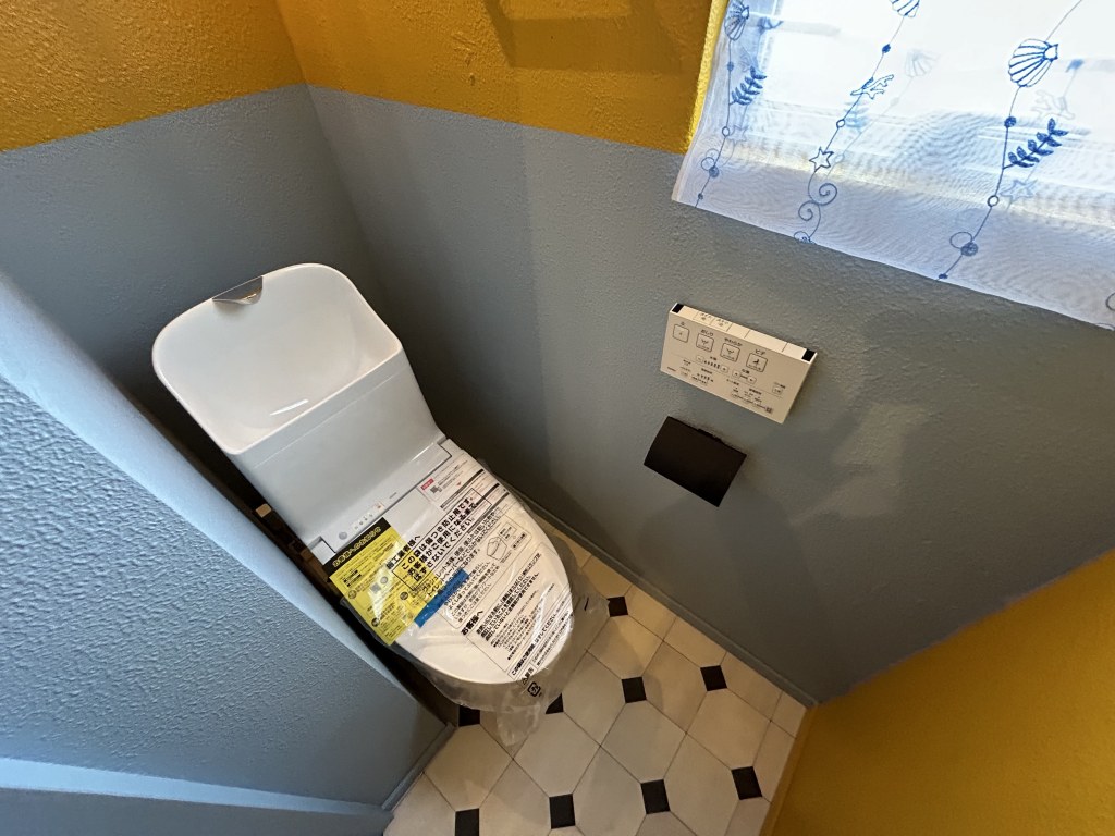 マンションリノベーション トイレリフォームを行いました。施工内容は、トイレ交換、天井壁クロス貼替、床クッションフロアー貼替、建具交換、照明交換、棚撤去、紙巻器交換、タオル掛け交換等を行いました。新築みたいになりました。