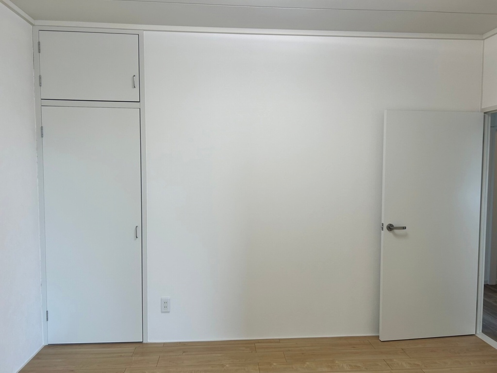 マンションリノベーション 和室⇒洋室リフォームを行いました。施工内容は、天井壁クロス貼替、畳からフローリング張替、押入れからクローゼットに交換、巾木交換、照明交換、入口木製建具交換等を行いました。最近は、和室は、ほとんど洋間に変更してしまう傾向になっています。