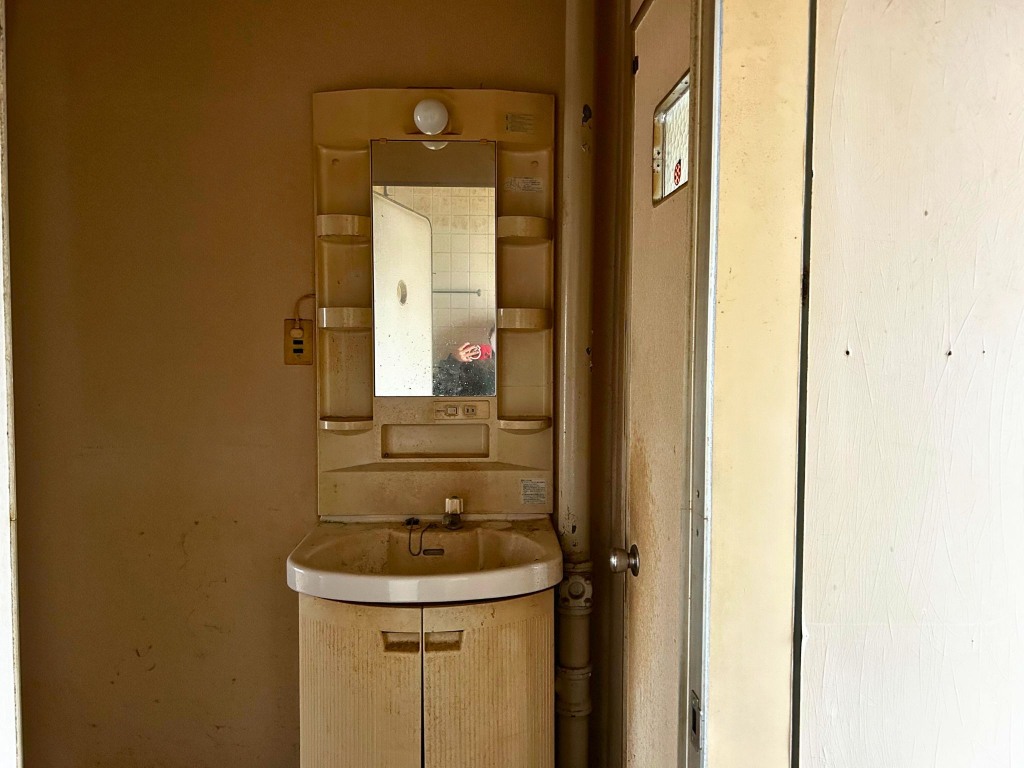マンションリノベーション 洗面所リフォームを行いました。施工内容は、洗面台交換、天井壁クロス貼替、床クッションフロアー貼替、建具交換、照明交換を行いました。新築みたいにキレイになりました!