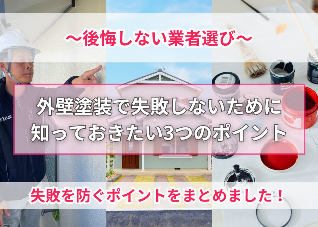 今回は、外壁塗装で失敗しないために知っておきたい3つのポイントを、わかりやすくご紹介します。
