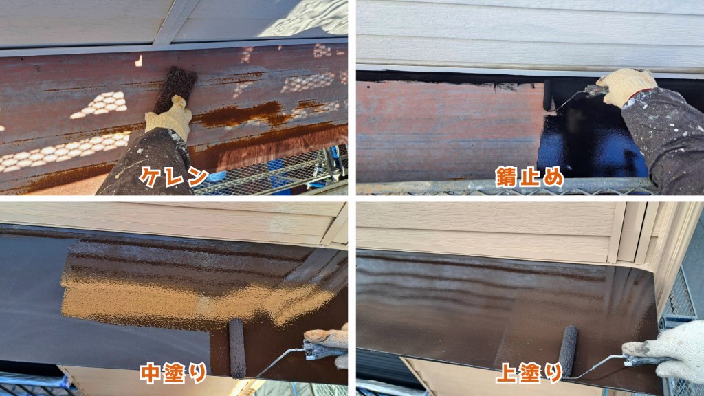 古い塗膜やサビをしっかり除去。下地を整えたら、サビ止め塗料を丁寧に塗布します。