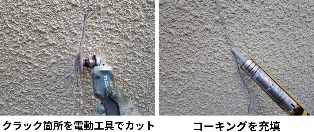 1ミリメートルよりも幅が小さいヒビ割れの場合は、ヒビ割れ周辺の汚れ、ゴミなどを落としてシーリング材(コーキング材)をヒビ割れの内部に注入し、ヒビ割れを埋める