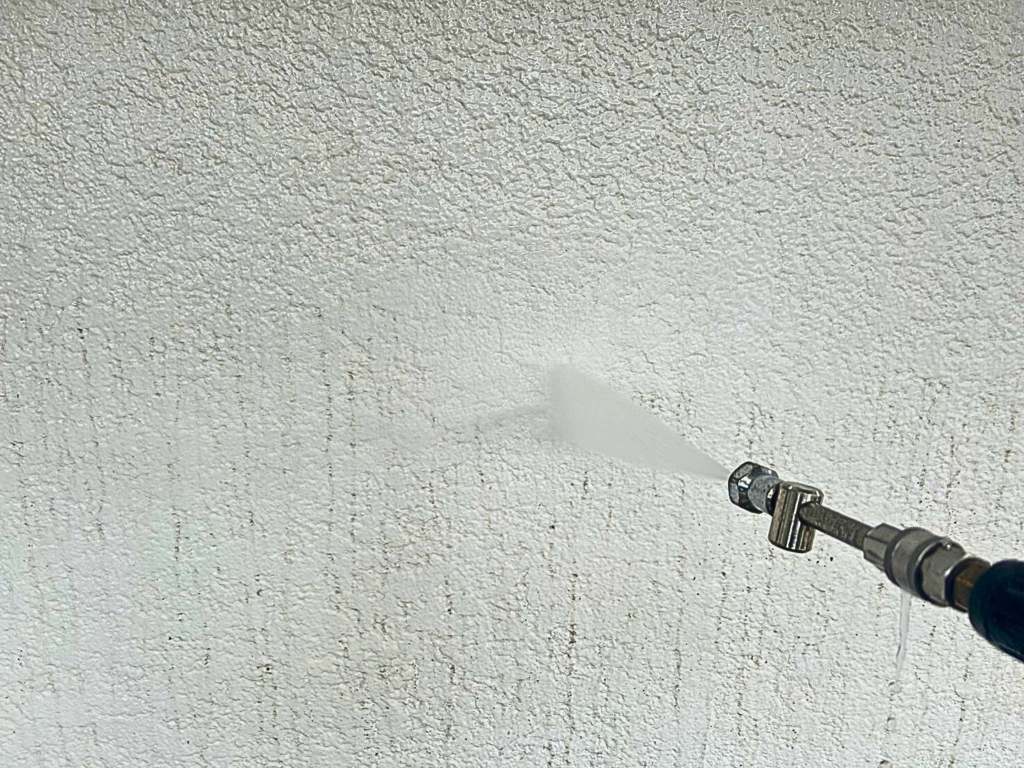 まず最初に高圧洗浄を行います。チョーキングや苔、カビ等を洗い落していきます。実際にチョーキングの影響で塗装が剥がれてしまい、塗装し直すというケースがありますので愛情ペイントは高圧洗浄を必ず行います。