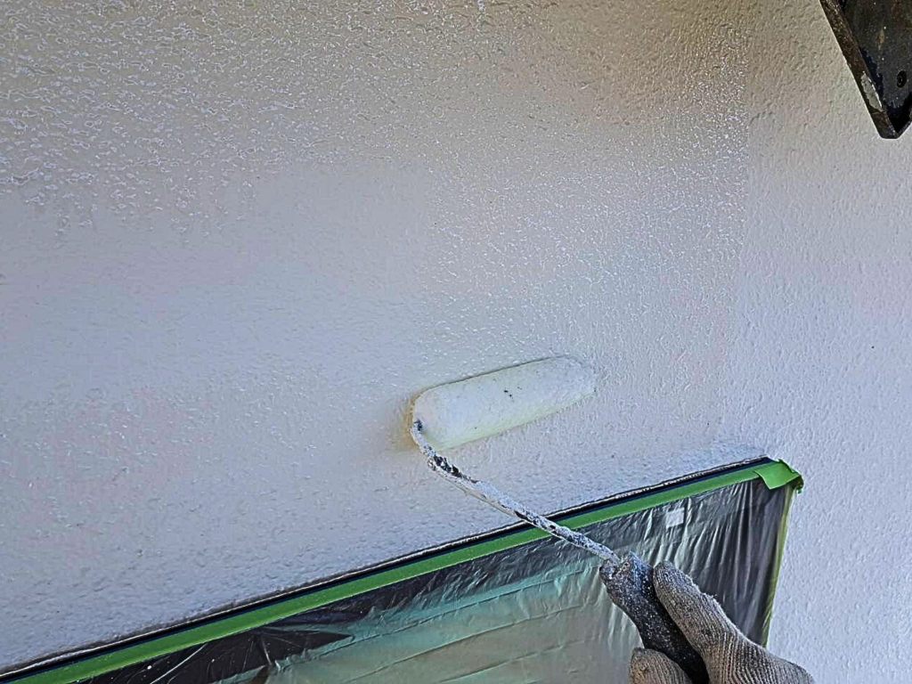 外壁の下塗りになります。微弾性フィラー、外壁の種類によってシーラーを塗布していきます。塗装表面にある細かなヒビ割れ、細かい穴等をカバーできる優れもの。これ一つで下地調整、下地強化機能があります。