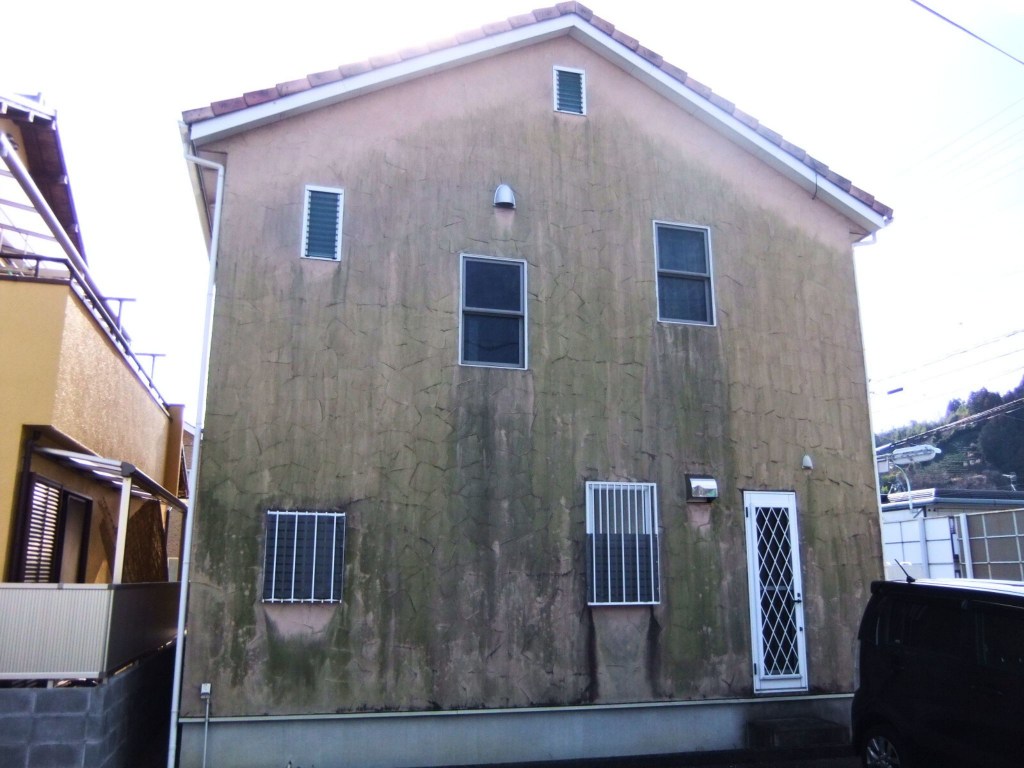モルタル壁に生じたカビや藻は、塗膜の劣化を著しく進行させるので注意が必要です。