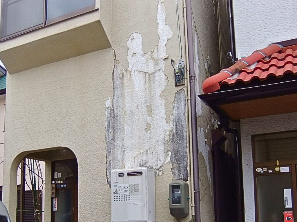 何年も雨風に晒されることで、モルタルや塗装の付着力が低下してしまった結果です。この症状は、モルタル外壁の場所に関係なく発生します。