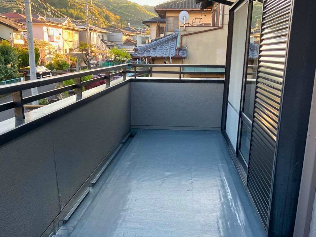 既存住宅リノベーション ベランダリフォームを行いました。施工内容は、ベランダ袖壁の塗装、防水層表面、側溝の防水工事を行いました。雨漏りを防止し、新築のようになりました。