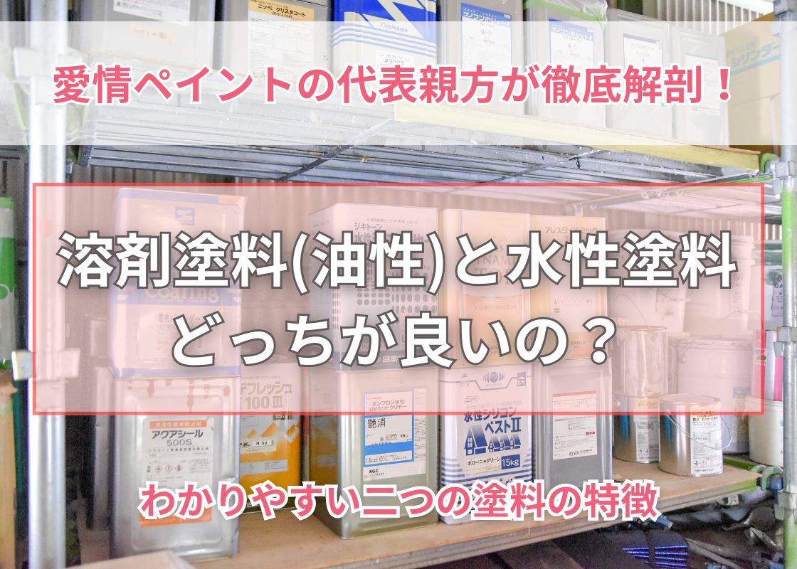 溶剤塗料は、希釈をする際にシンナーを要する塗料になります。水性塗料は水で希釈するタイプの塗料になります。