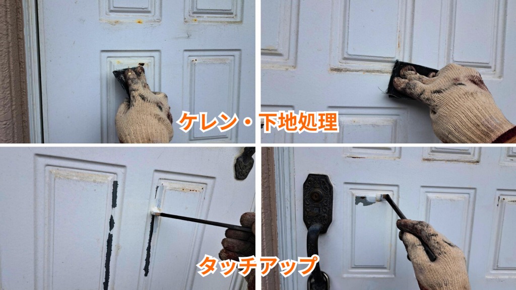 2026/4/22 玄関ドアは毎日使う場所だからこそ、知らないうちに小さな傷や擦れ、汚れが蓄積しやすい部分です。今回の現場でも、ドア表面に細かな傷みや一部サビの発生が見られ、全体的に少し古びた印象になっていました。