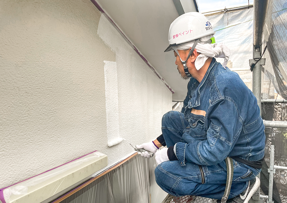塗装の密着性を高めるため、建物の外壁に最適な下塗り材を使用します。