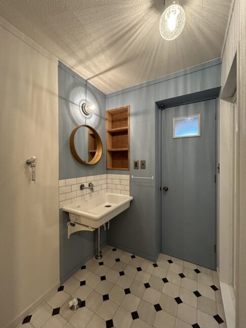 代表親方ブログ施工内容 2025年7月15日 いつもありがとうございます。総代表親方五十嵐です。 マンションリノベーション 洗面所リフォームを行いました。施工内容は、洗面台交換、天井壁クロス貼替、床クッションフロアー貼替、建具交換、照...