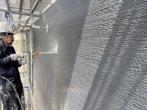 静岡市駿河区2025/4/25 足場も組み終わり、まず最初に高圧洗浄を行います。外壁や屋根の塗装面にこびりついた汚れやカビ、チョーキング(外壁等を触ると手に付く白い粉の現象)を高圧の水流によって洗い落としていきます。何故、高圧洗浄を...