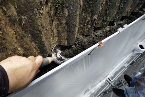 静岡市駿河区2024/8/3 雨樋の掃除になります。長年たまっていた苔や土などのゴミを全て取り除いてキレイにしていきました。
