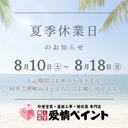 静岡市駿河区平素は格別のお引き立てをいただき厚く御礼申し上げます。弊社では誠に勝手ながら下記日程を夏季休業とさせて頂きます。 休業期間 令和6年8月10日(土)〜8月18日(日)※8月19日(月)より通常営業とさせて頂きます。 何か...